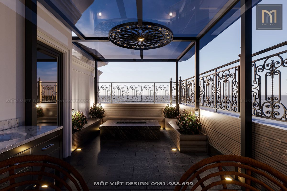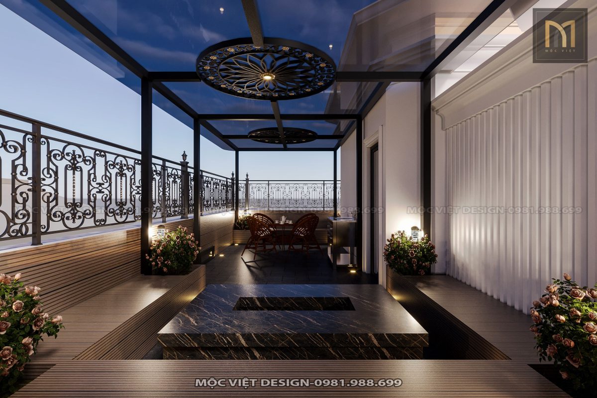 Tầng 1 : khách bếp ăn , wc chung, bếp ngoài trời, sân vườn, thang máy, thang bộ Tầng 2 : 2 phòng ngủ master , wc khép kín, thang máy, thang bộ , phòng sinh hoạt chung Tầng 3 : 2 phòng ngủ master, wc khép kín, thang máy, thang bộ Tầng tum : phòng thờ, sân vườn,thang bộ, thang máy,giặt phơi